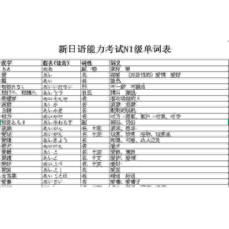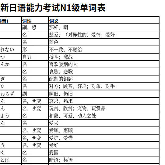 新日语能力考试n1n2n3n4词汇表PDF+excel电子版