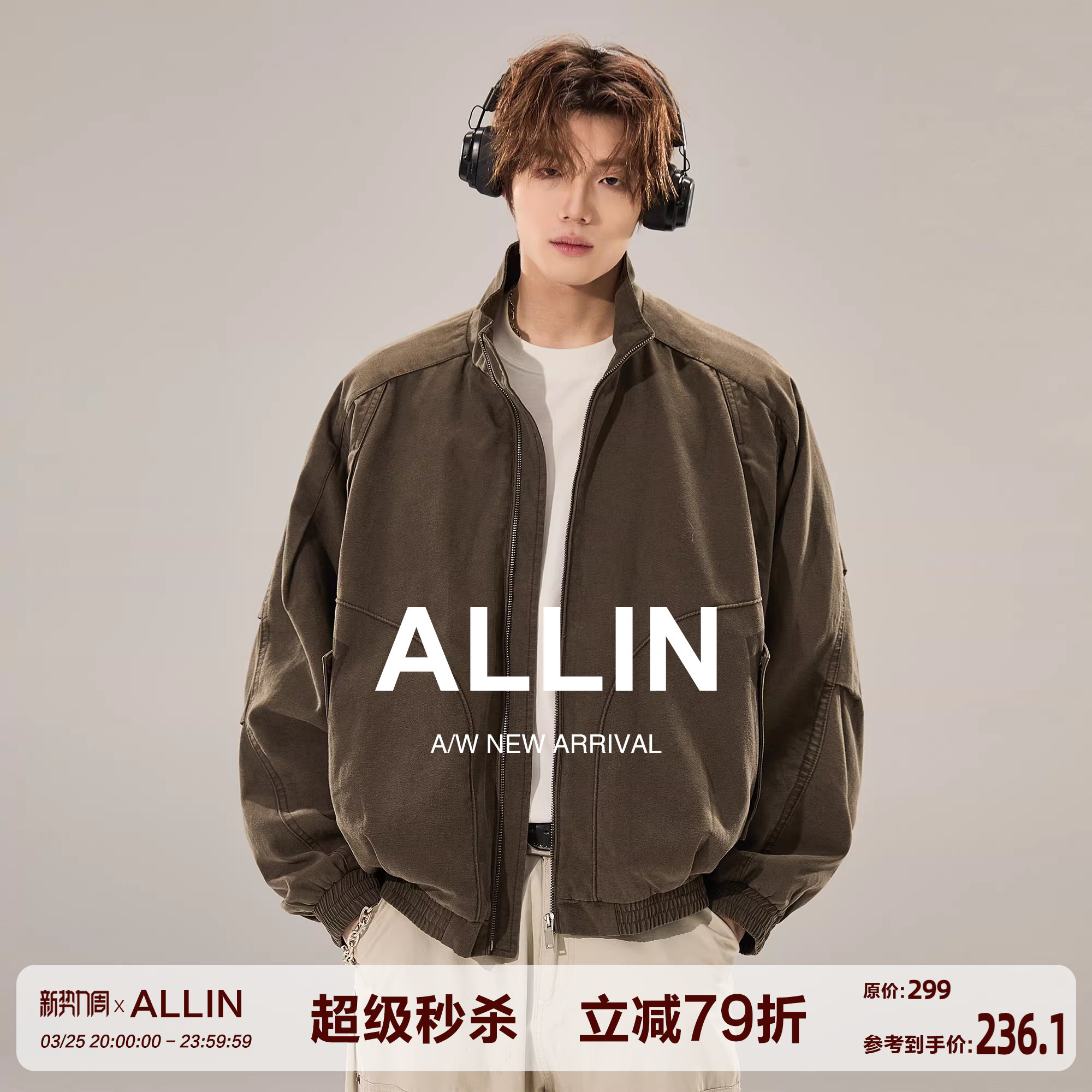 ALLIN 哈灵顿立领夹克男春秋季复古莱赛尔情侣短款工装飞行员外套