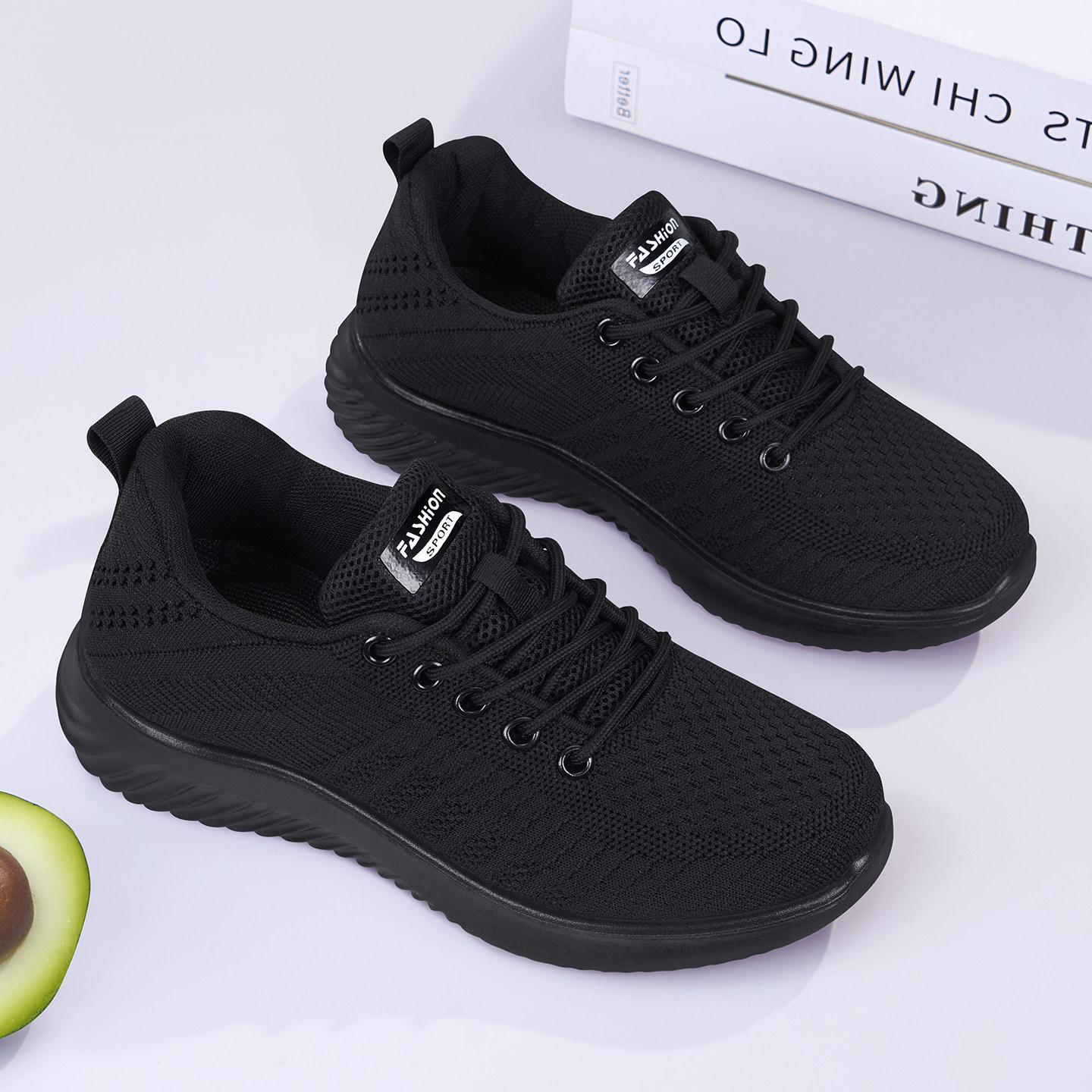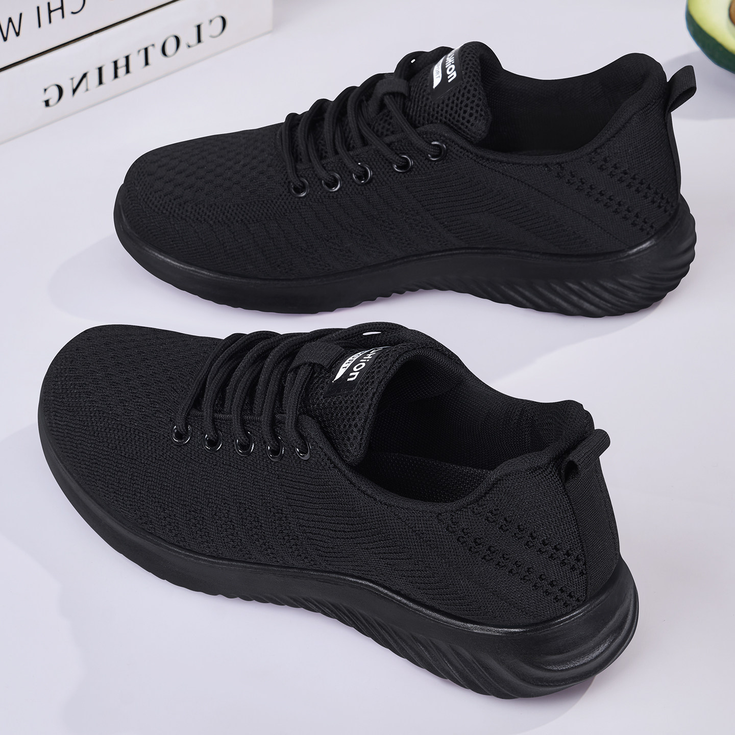 厨房防滑鞋女春2026新款透气不累脚黑色工作鞋软底运动妈妈鞋网面