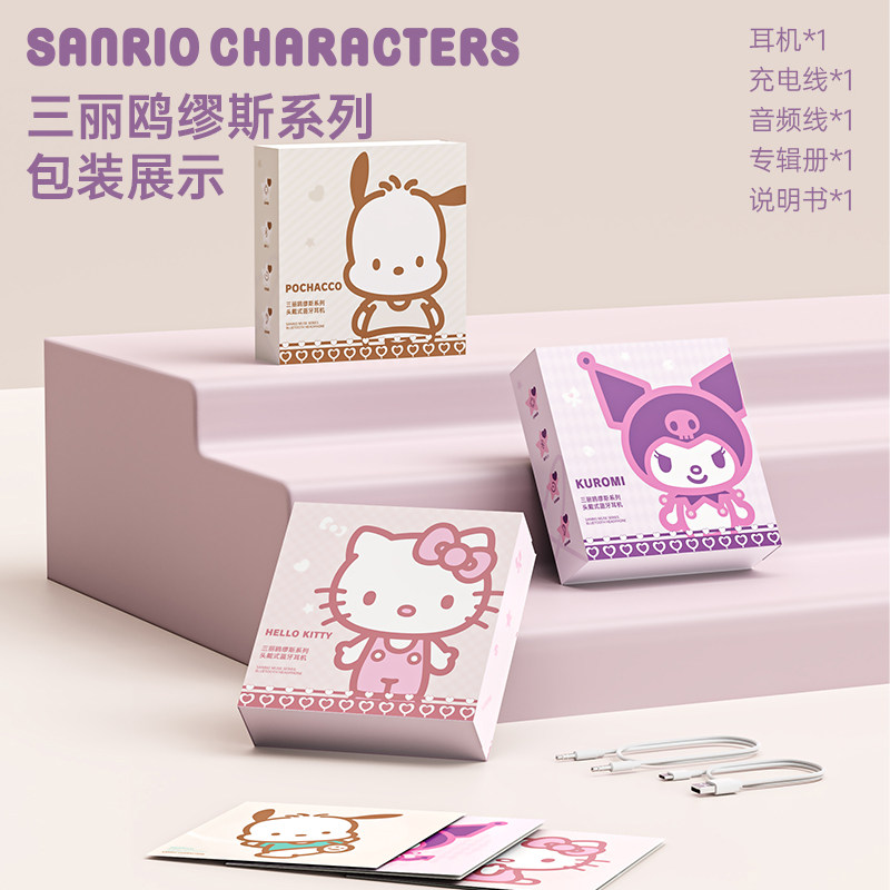 三丽鸥头戴式蓝牙耳机无线电脑耳麦儿童可爱女生高颜值学生礼物粉