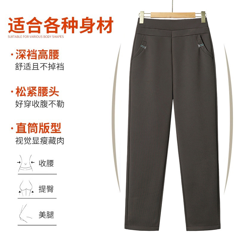 妈妈裤子春秋款松紧高腰弹力中老年女裤宽松大码直筒奶奶加绒长裤