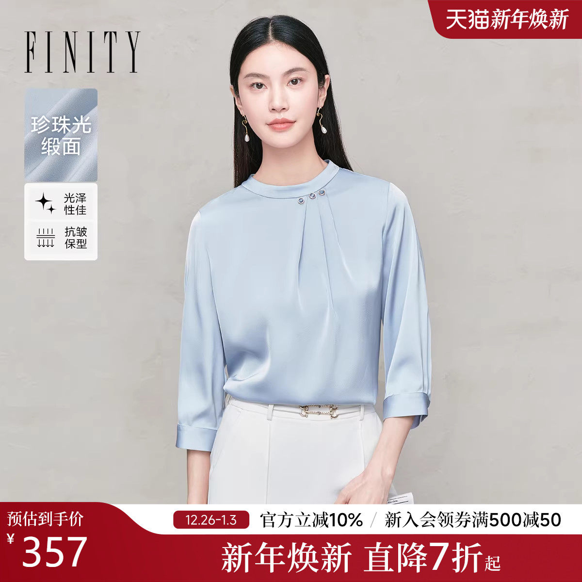 FINITY菲妮迪雪纺衫2025年秋季新款简约捏褶设计感优雅气质上衣女