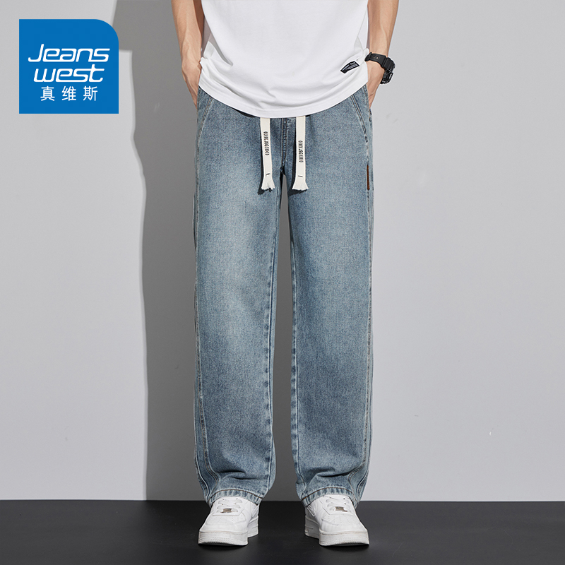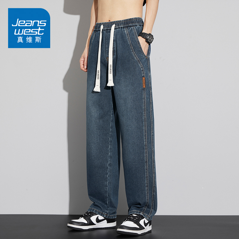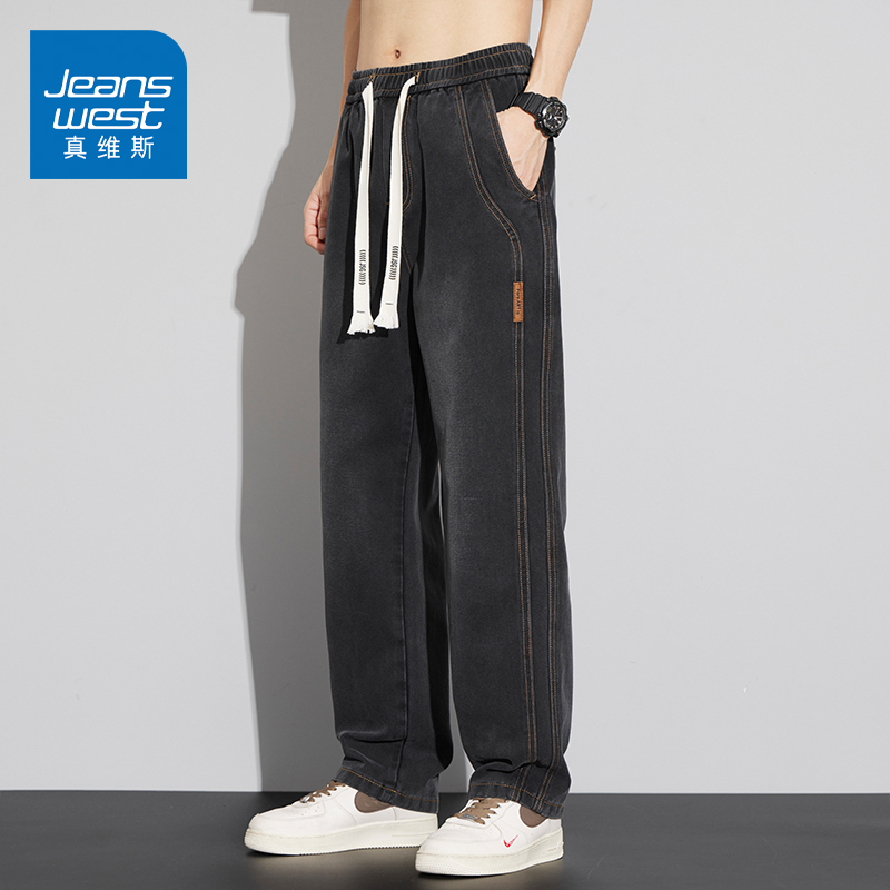 KZ真维斯抽绳松紧腰牛仔长裤男士直筒阔腿男裤子2025年新款秋冬季