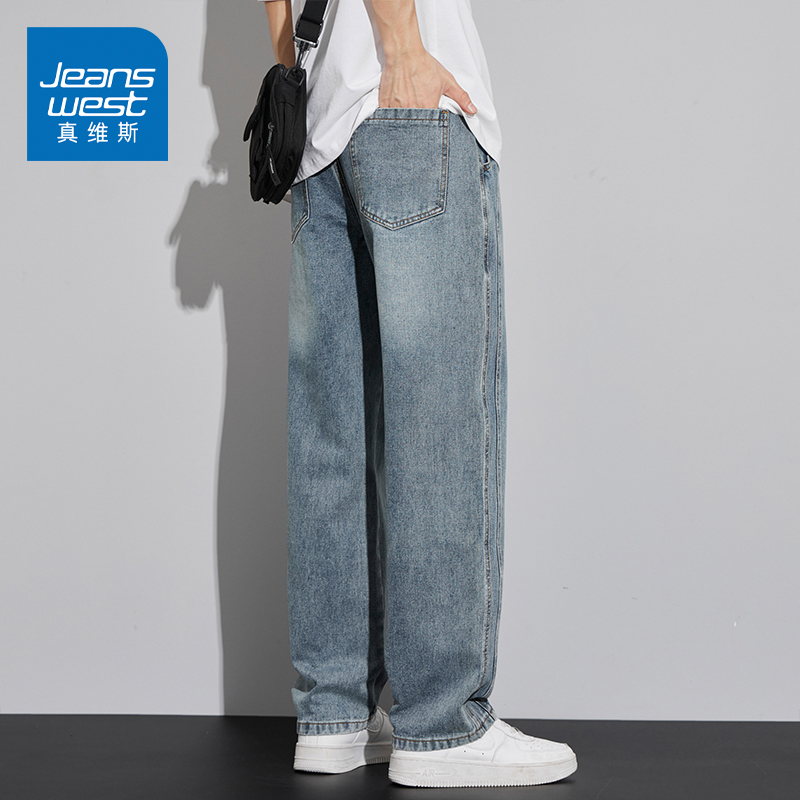 森柔牛仔森马牛仔裤男款2025新直筒裤长裤原色复古美式水洗宽松潮