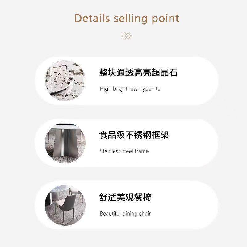 超晶石餐桌意式轻奢微晶石天然大理石圆桌高端岩板饭桌家用小户型