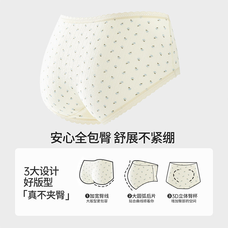 雅鹿内裤女士纯棉7类a级抗菌100全棉加长档女生三角短裤收腹中腰