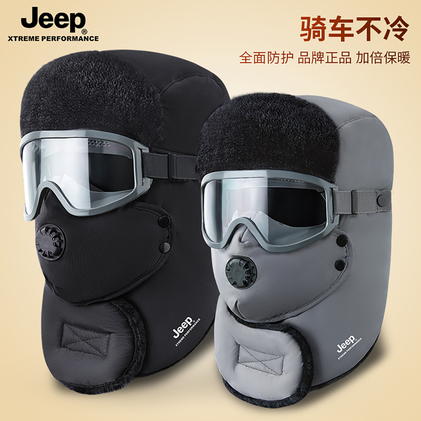 jeep吉普男士冬季大头围帽子加绒加厚保暖雷锋帽户外骑车防寒帽冬