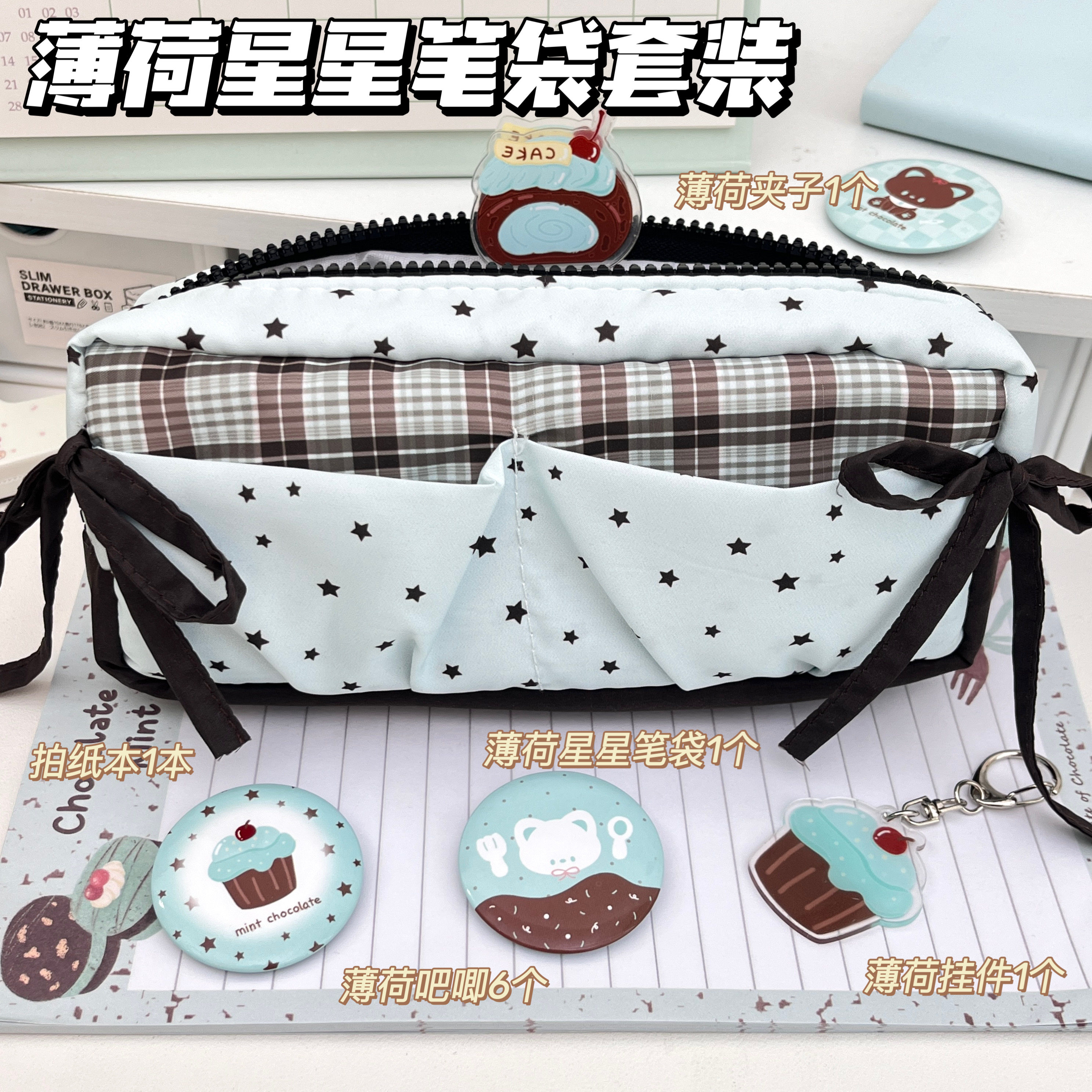 原创少女心薄荷星星笔袋高颜值少女心卡通收纳袋大容量学生文具袋薄荷绿学生专用简约风铅笔袋初中生专用痛包