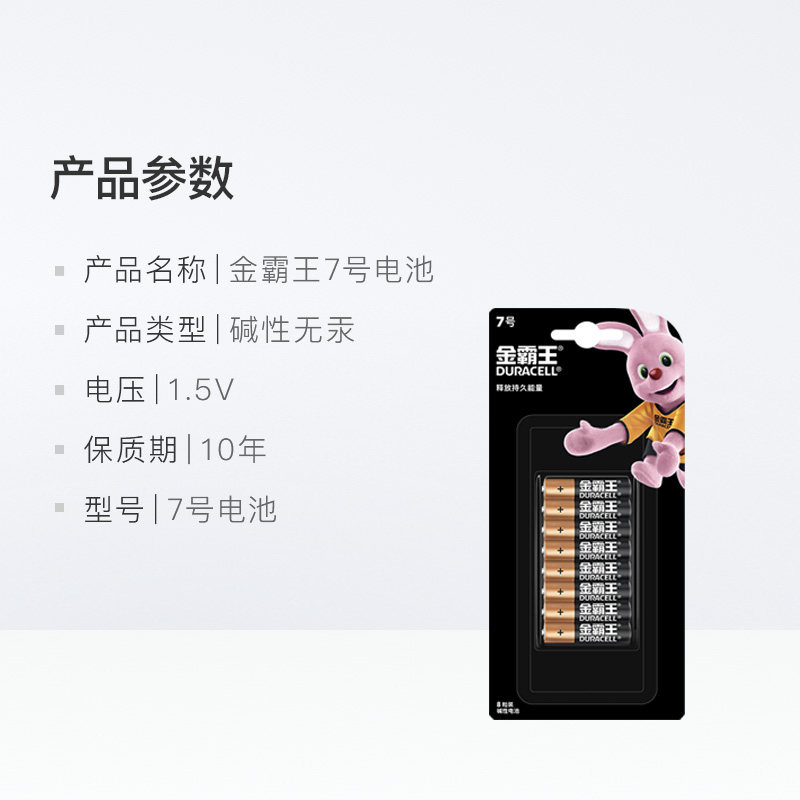 DURACELL金霸王碱性干电池7号8粒小电池普通七号玩具计算器摇控器