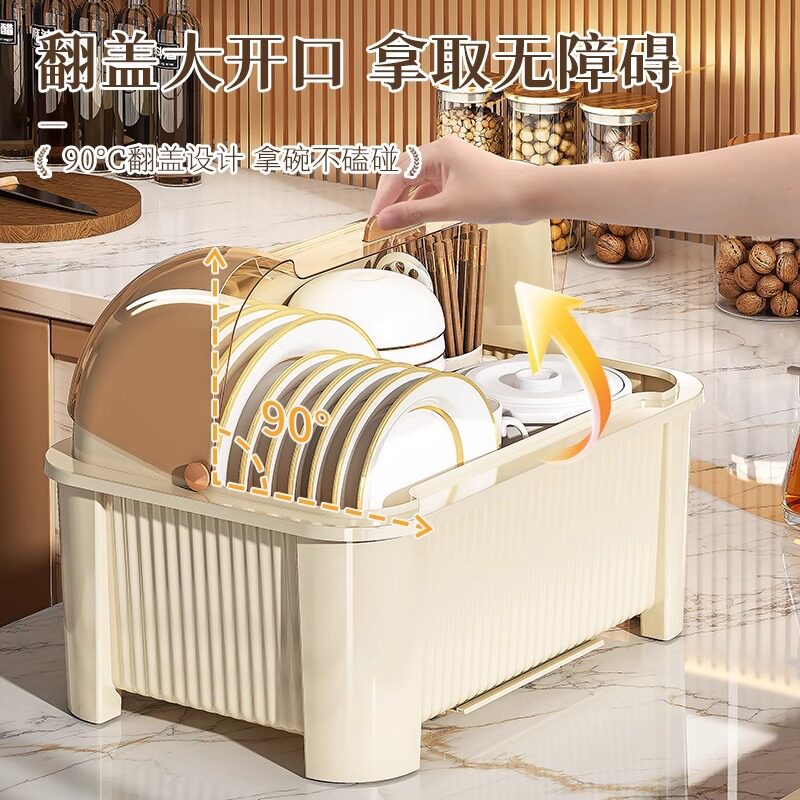 碗筷收纳盒带盖放餐具装盘子的置物架家用厨房沥水碗柜塑料储物箱