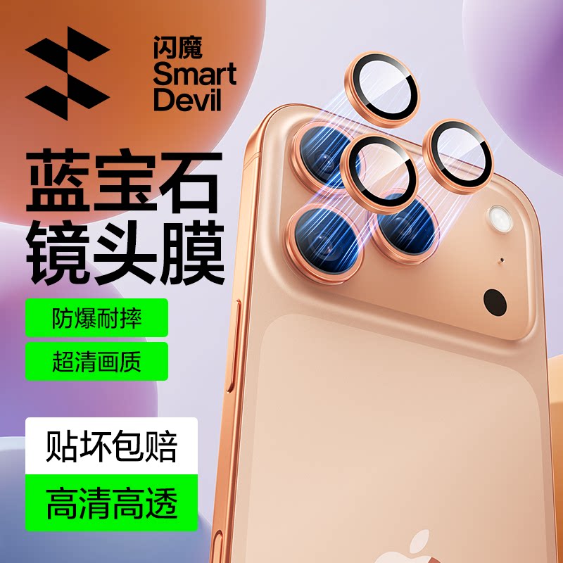 【蓝宝石AR抗反射】闪魔适用iPhone17ProMax手机镜头膜苹果17Pro镜头膜16摄像头圈15por玻璃高清防爆全包保护