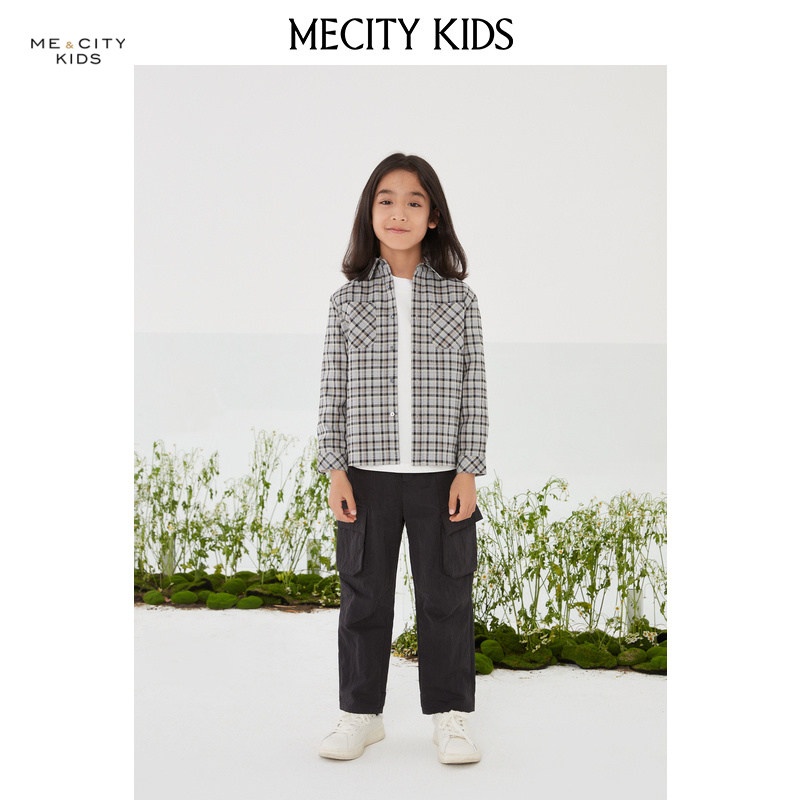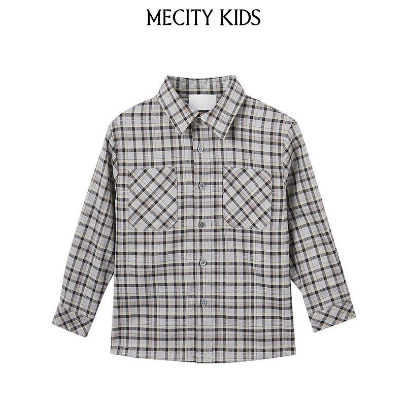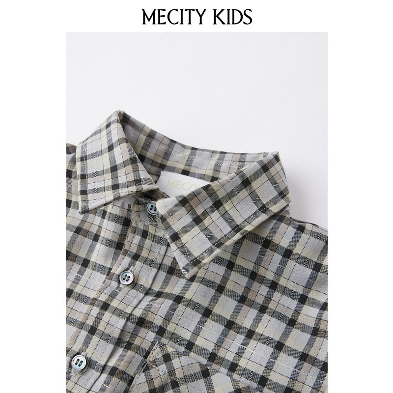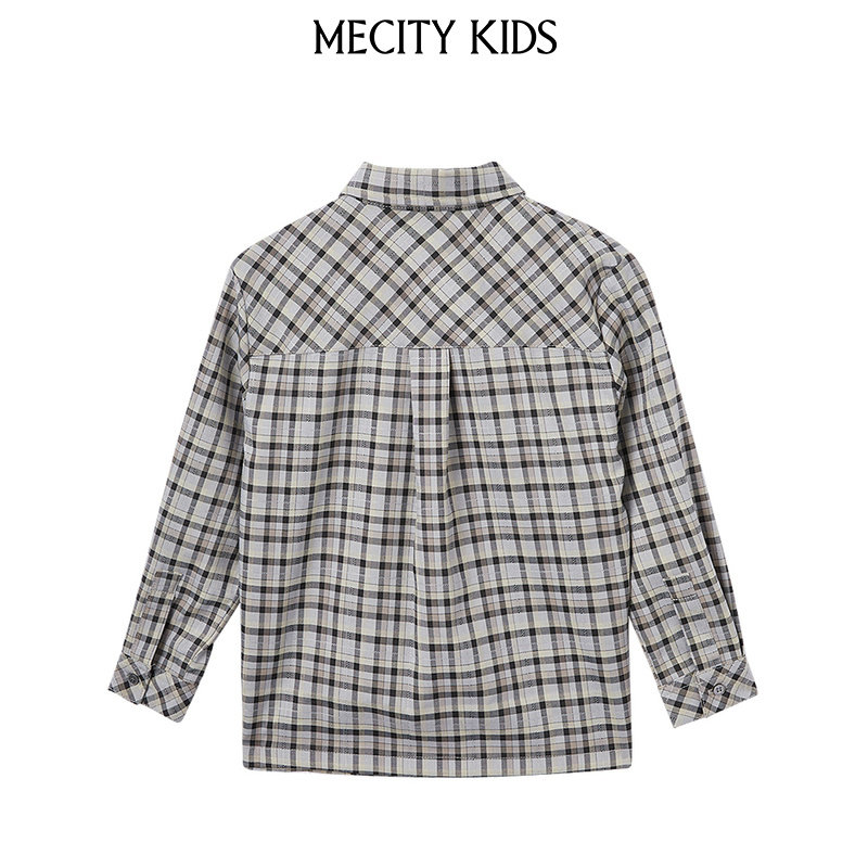 米喜迪童装春新款男童休闲格纹长袖衬衫潮流时尚百搭舒适薄款衬衣