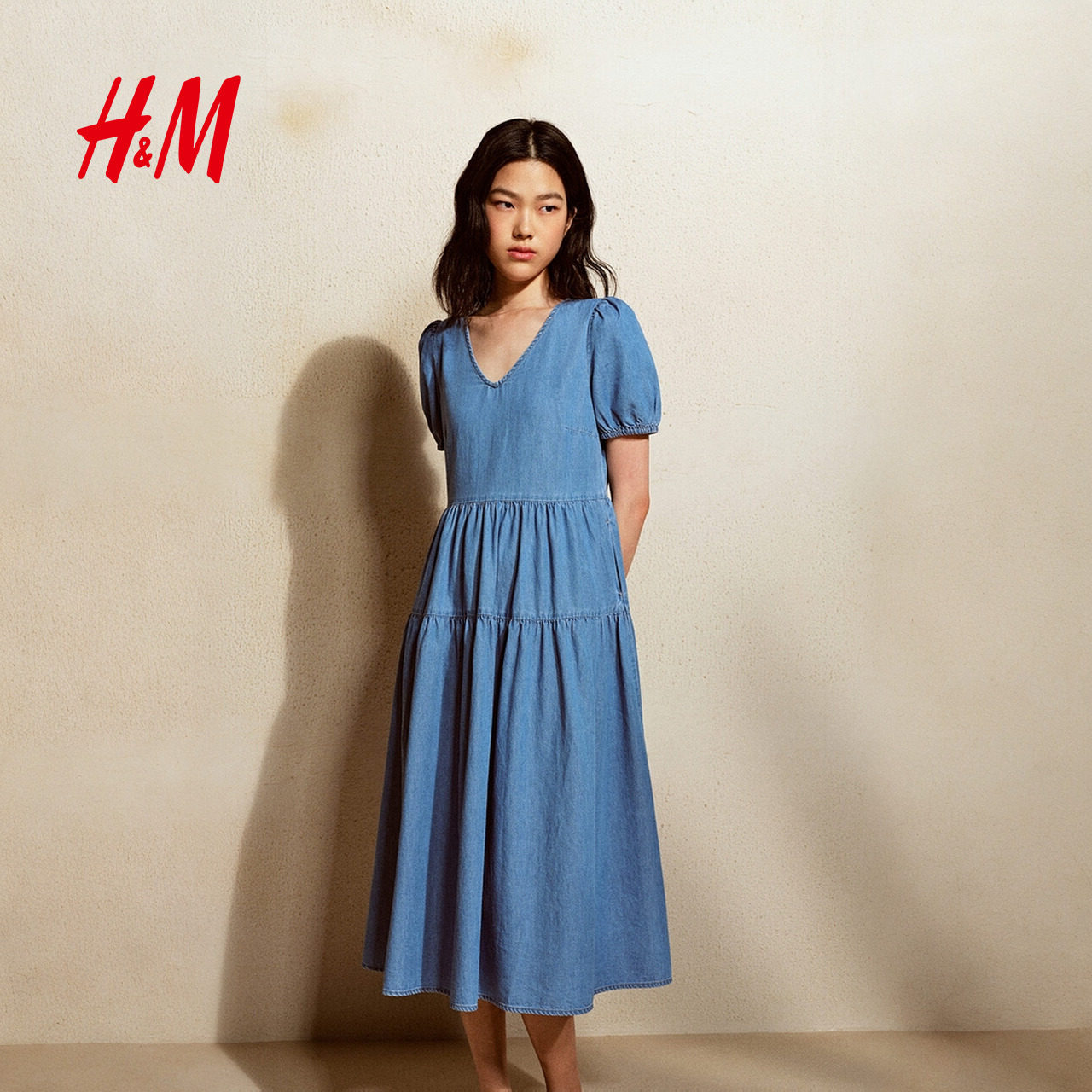 HM女装连衣裙春季潮流时尚休闲分层牛仔连衣裙1303317