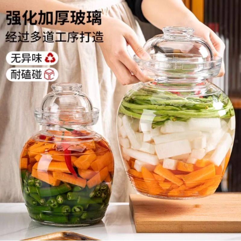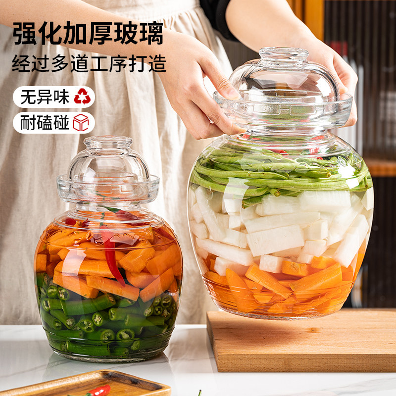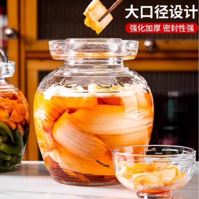 泡菜坛腌菜缸玻璃家用四川咸菜罐酸菜坛子加厚带盖密封瓶大号容器
