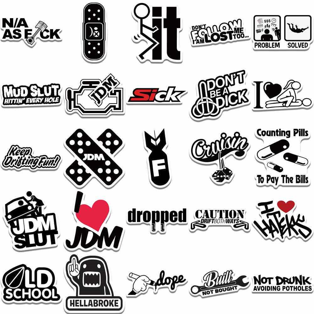 直销新款50张卡通JDM文字贴纸装饰汽车摩托车滑板行李箱防水贴纸