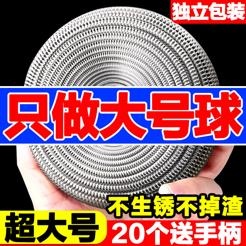 钢丝球清洁球不掉丝大号刚丝球不锈钢厨房洗碗铁丝球刷锅家用手柄