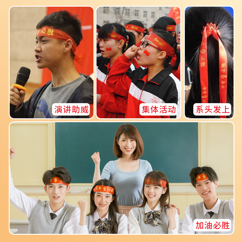 杰利百日誓师中考高考加油必胜头巾宣誓大会励志标语送考红丝带金榜题名头戴绑带头助威考生运动会腕带定制