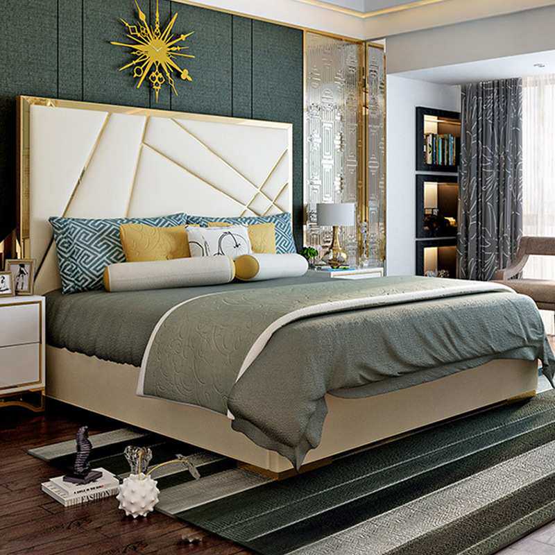 轻奢后现代简约美式主卧双人床1.8米婚床北欧式1.5m皮艺储物软床