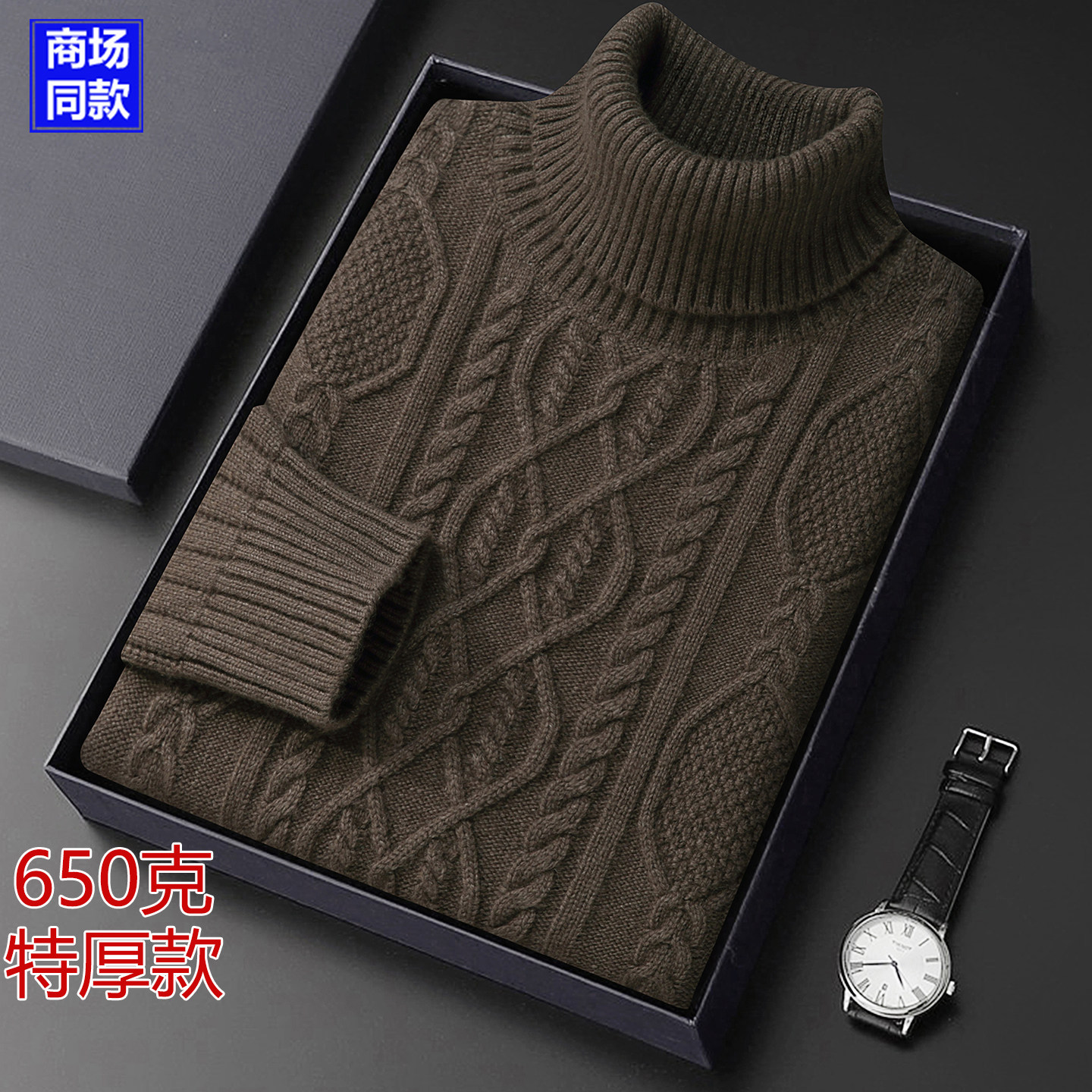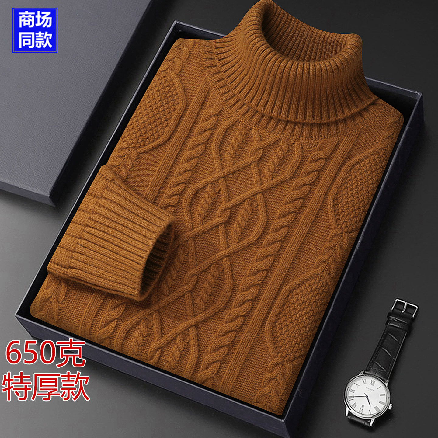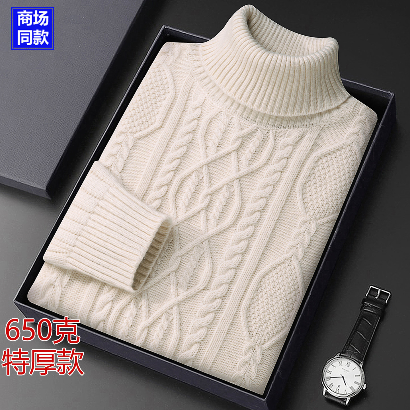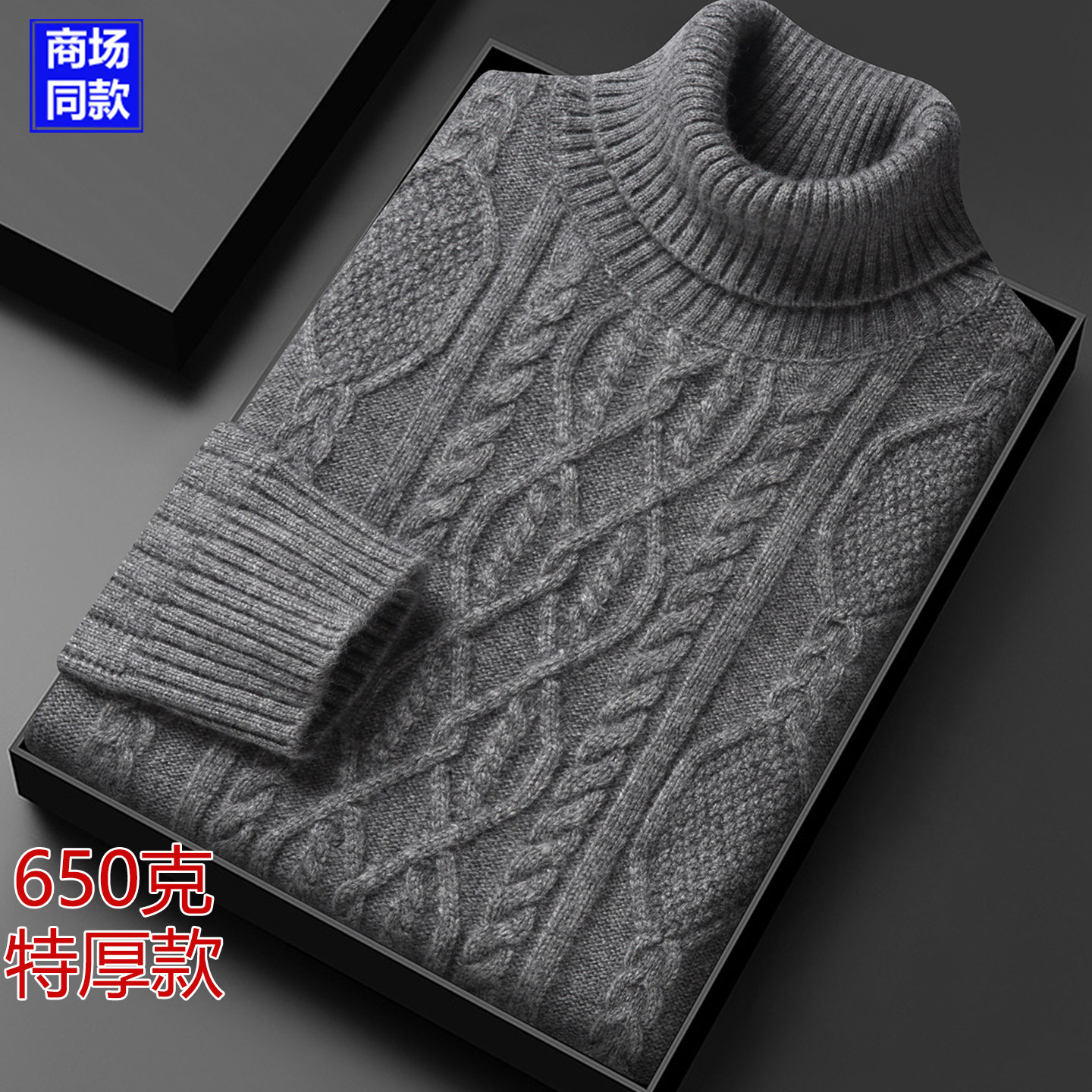 鄂尔多斯市新款高端羊绒衫男士半高翻领冬季特厚款保暖羊毛衫毛衣