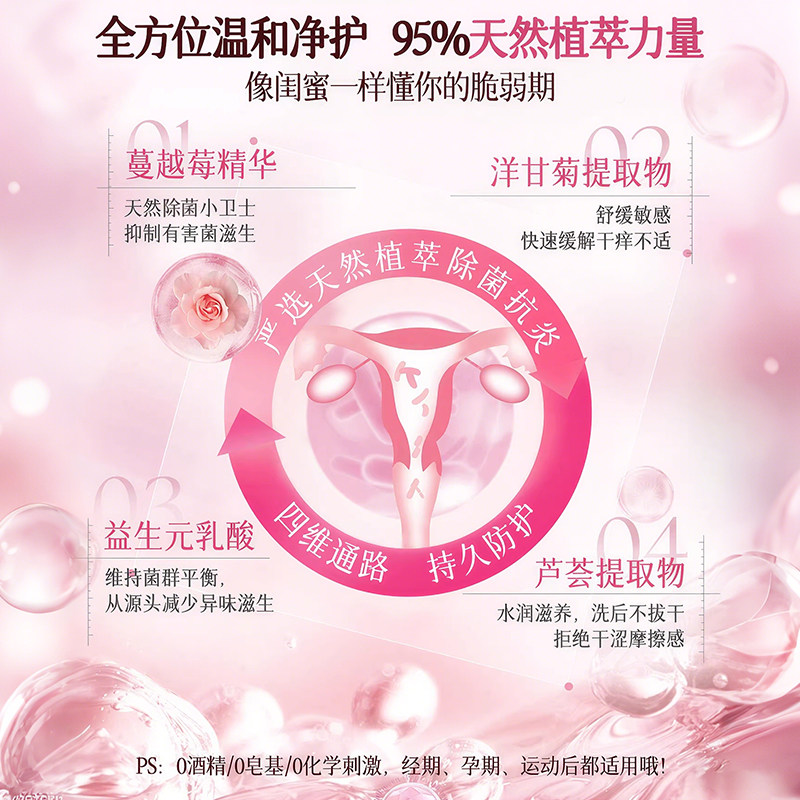 妇炎洁私处清洗液女性私密日常益生菌洗护液抑菌清洁液女生护理液