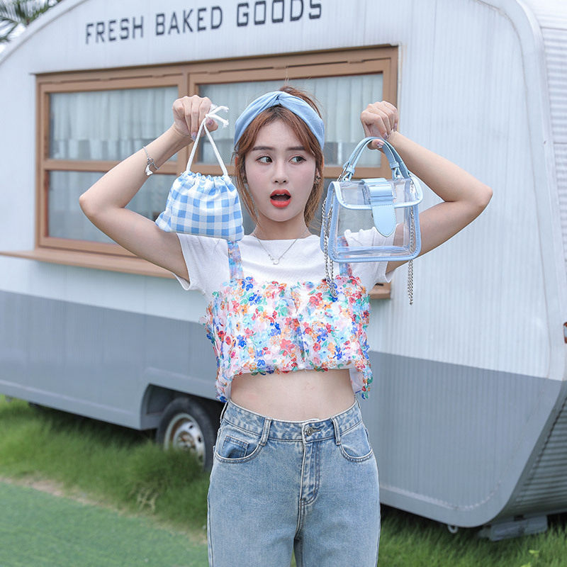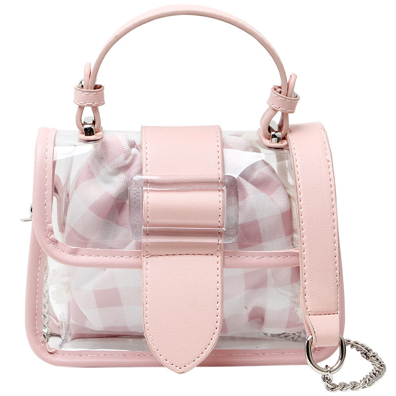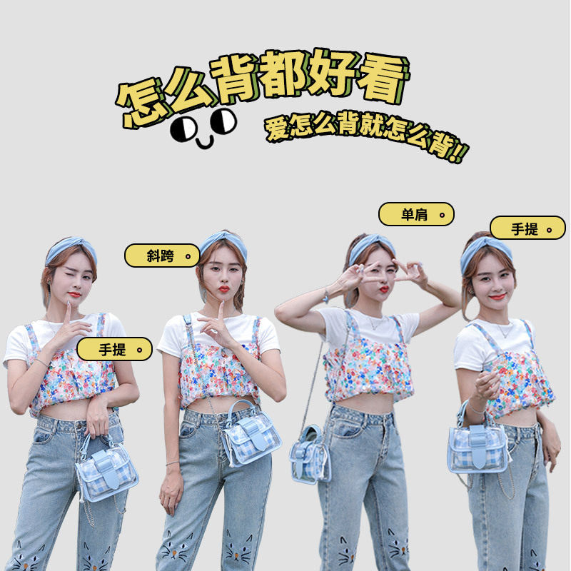 格子透明包2025新款包果冻斜挎包链条小方包痛包现货