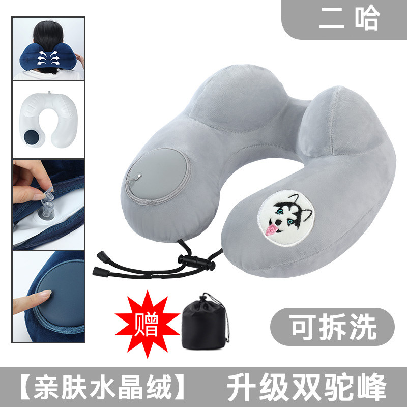 按压式充气u型枕旅行枕头便携颈枕吹气u形枕高铁长途飞机睡觉神器