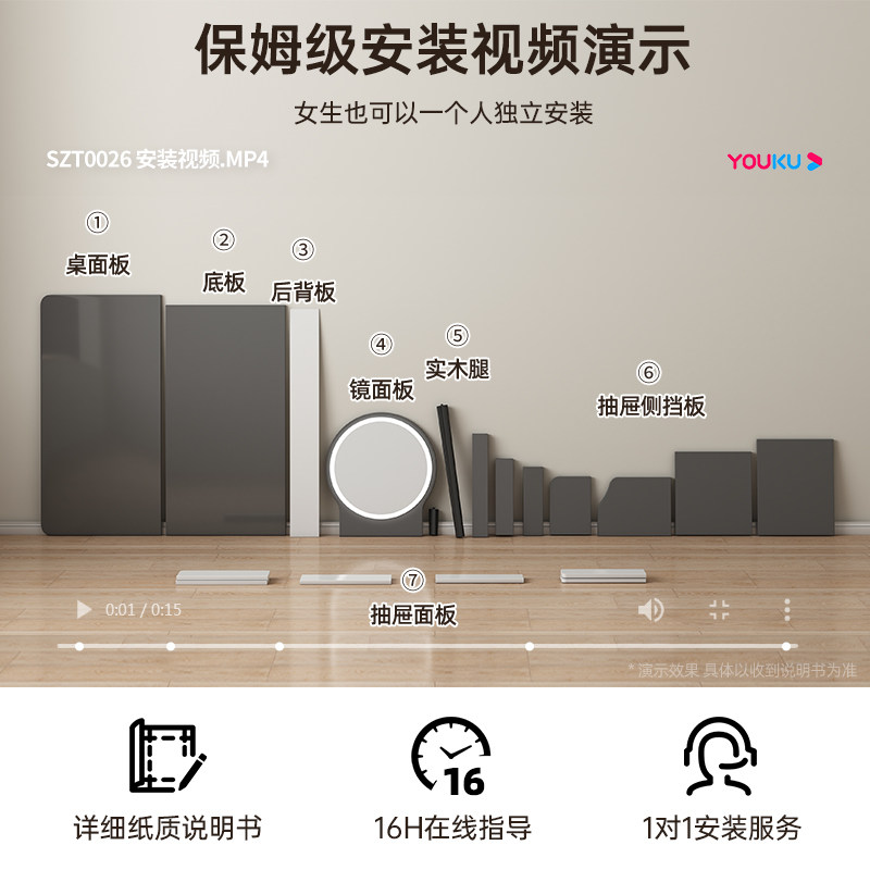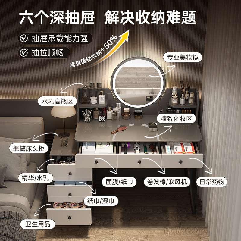 梳妆台卧室简约现代2026新款书桌角落小型收纳斗柜一体镜子化妆桌
