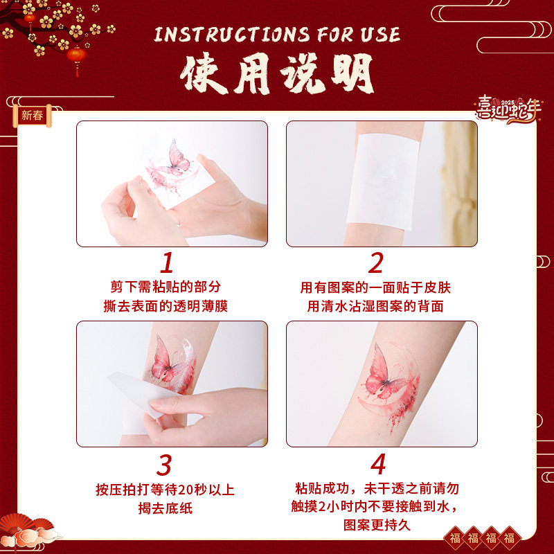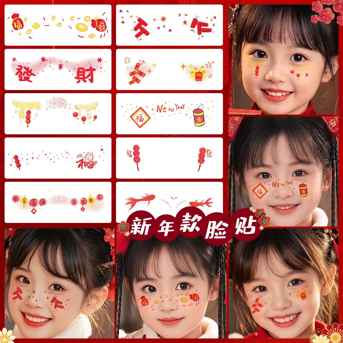 新年妆容贴脸贴儿童脸部彩绘烟花糖葫芦少女元旦新春聚会腮红化妆贴纸防水纹身贴节日装扮新年拍照氛围感道具