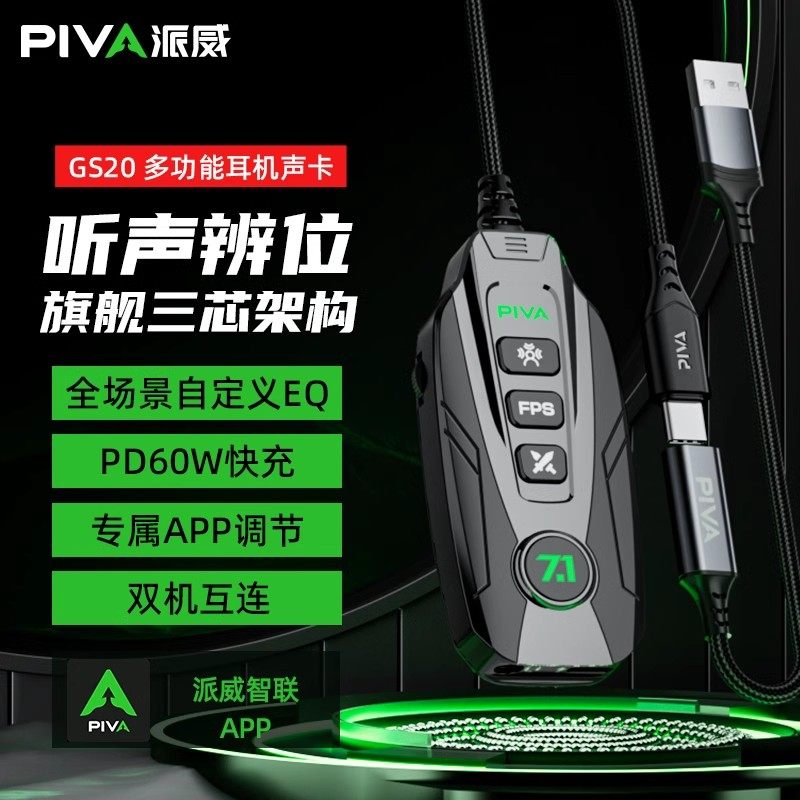 Piva派威GS20外置独立声卡听声辩位虚拟7.1声道耳机音频口转换器