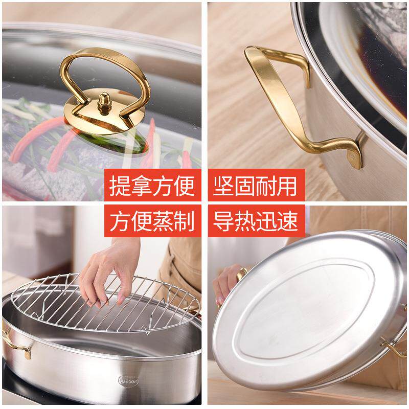 苏泊尔304不锈钢蒸鱼锅大号椭圆蒸锅隔水带盖加厚小蒸笼家用海鲜