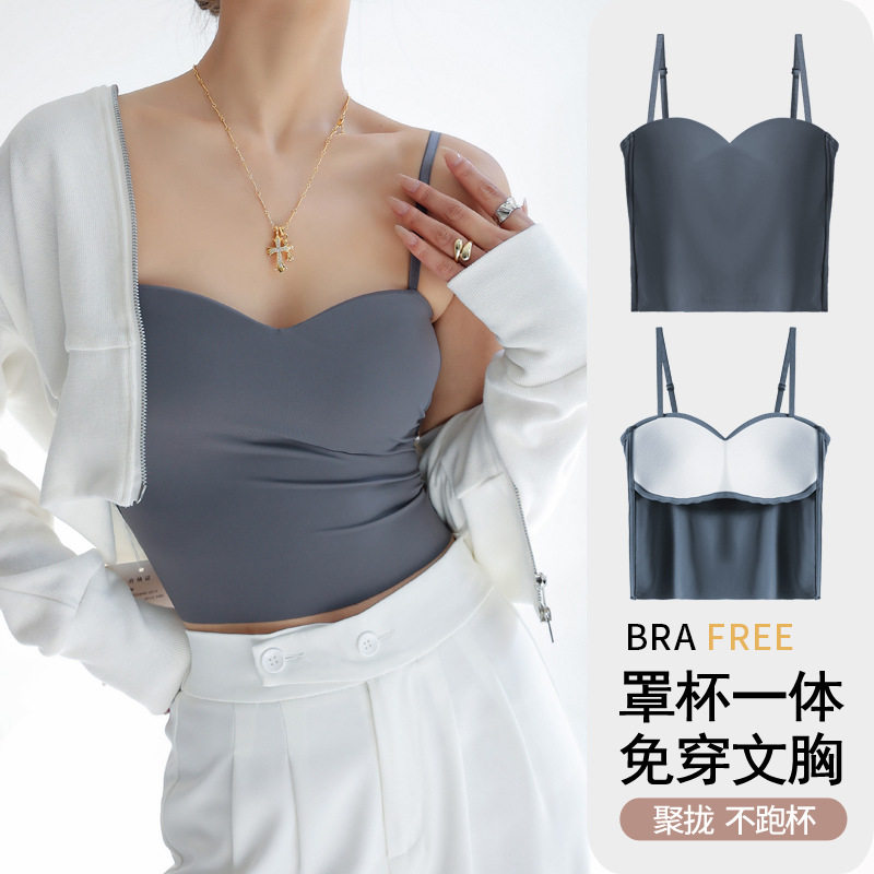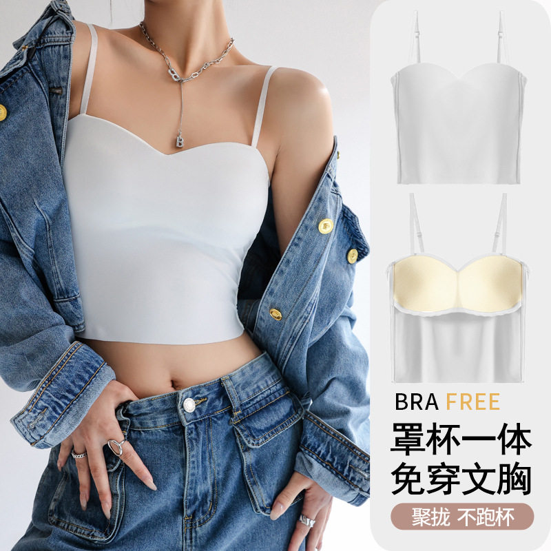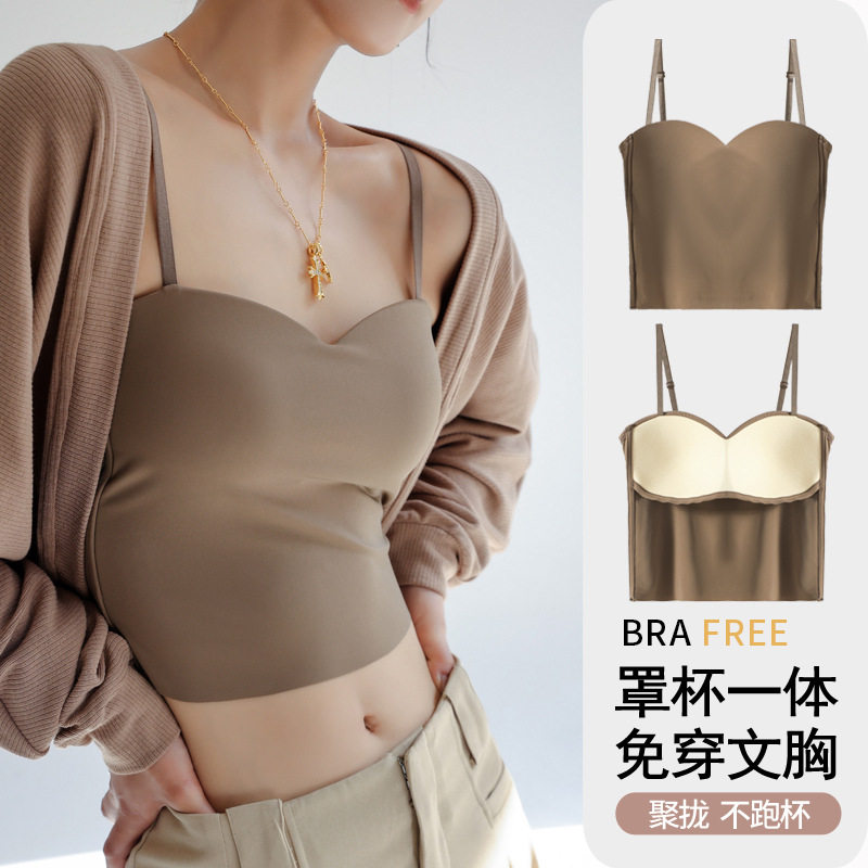 倩牛精选】冰丝吊带背心女内搭带胸垫一体抹胸防走光美背内衣薄款