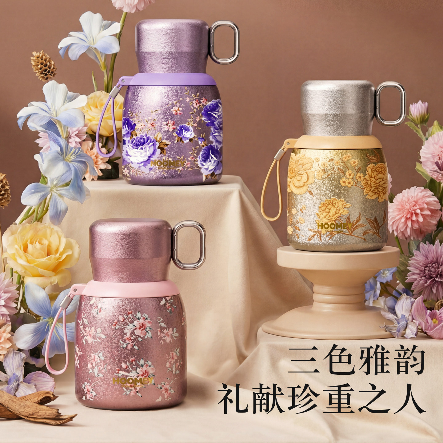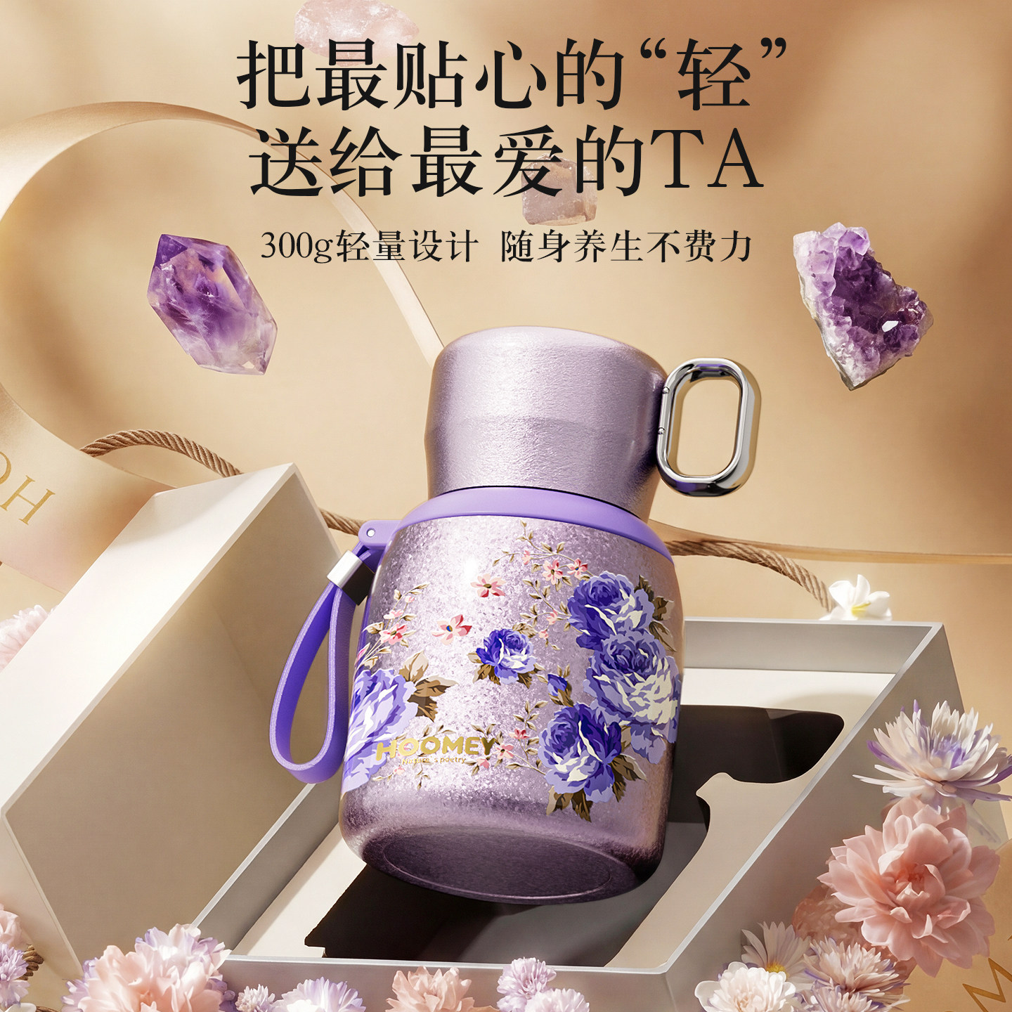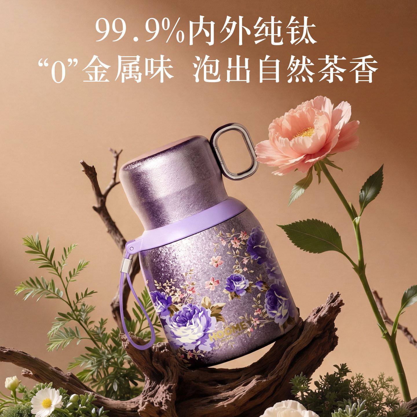 hoomey钛杯纯钛保温杯女高颜值水杯子送长辈妈妈生日礼物泡茶水壶