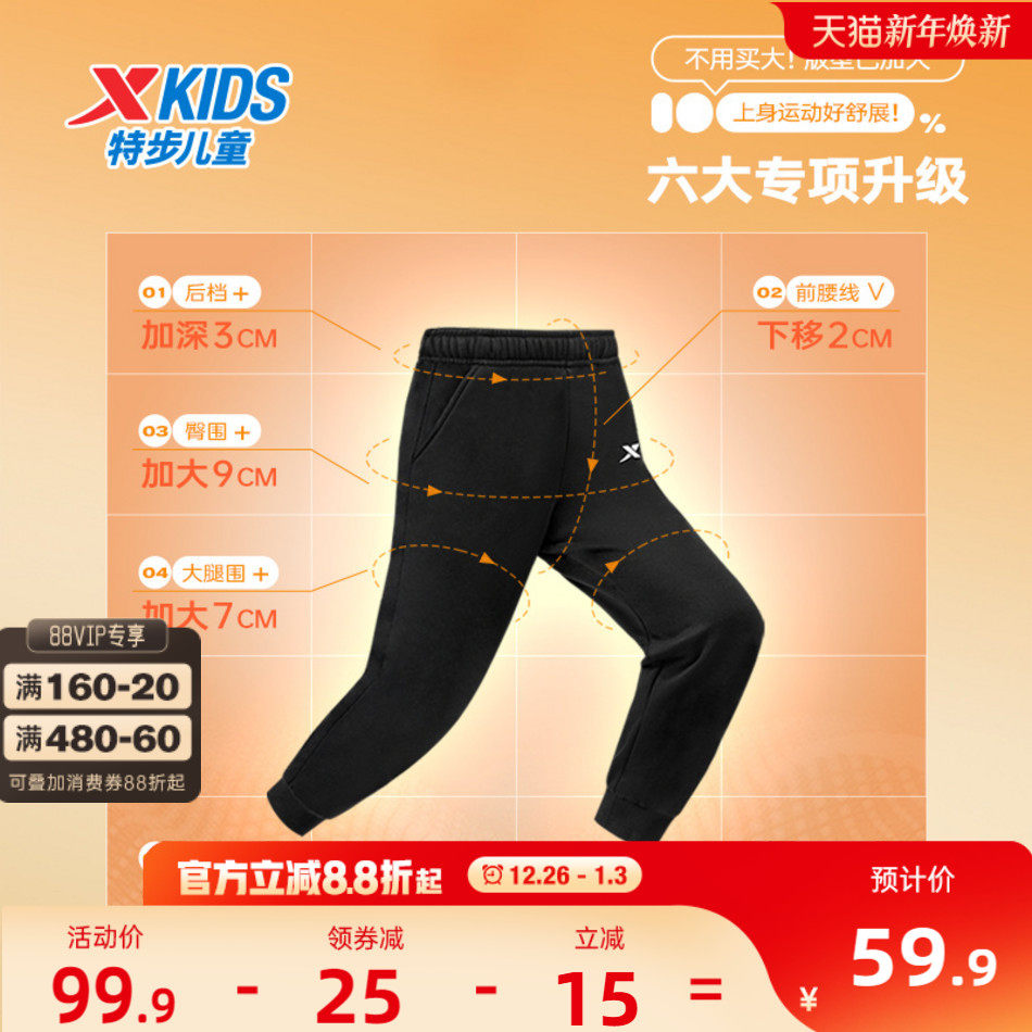 胖宝裤|特步童装男童宽松加绒裤秋冬款儿童长裤大童加肥加大裤子