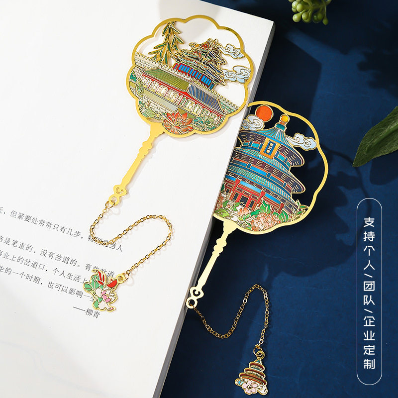 「次日达」北京长城旅游景区金属团扇书签文创古典中国风纪念品礼物伴手礼