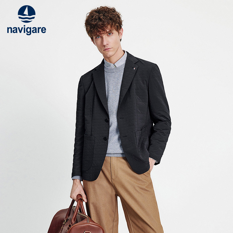 Navigare意大利小帆船灰色时尚西服男26春季新款平驳领通勤单西