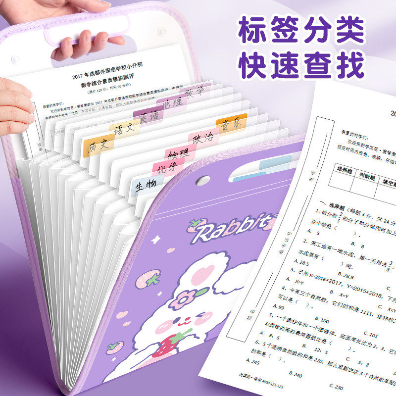 试卷收纳袋小学生A4手提文件夹多层大容量专用手拎式风琴包卷子整理神器初中生高中生书夹子科目分类试卷夹