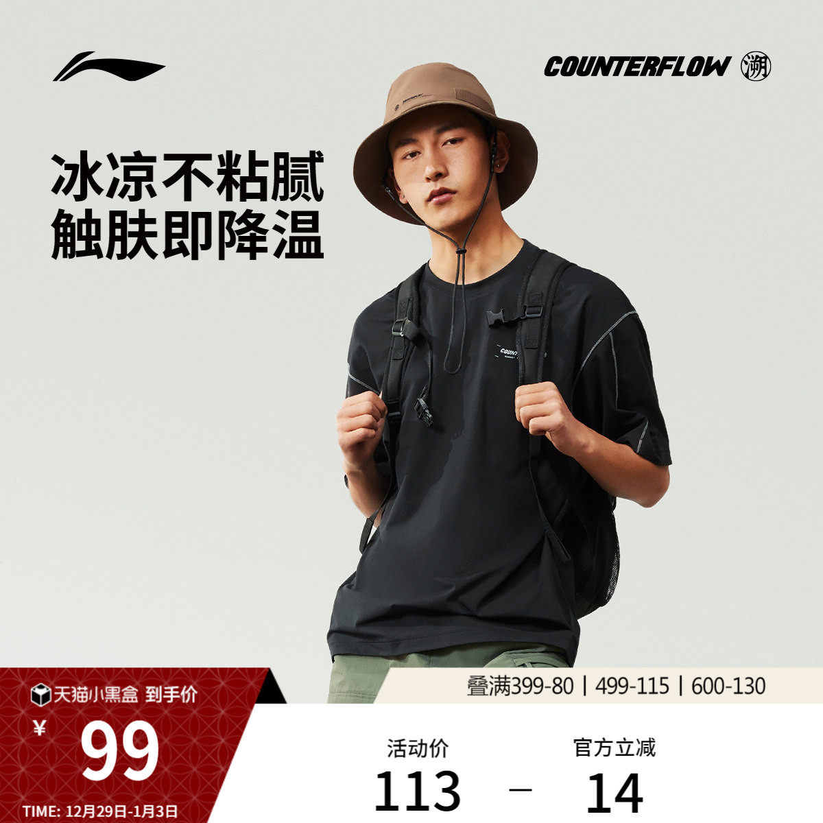 李宁户外CF溯丨短袖男士户外速干上衣宽松半袖休闲体恤运动T恤