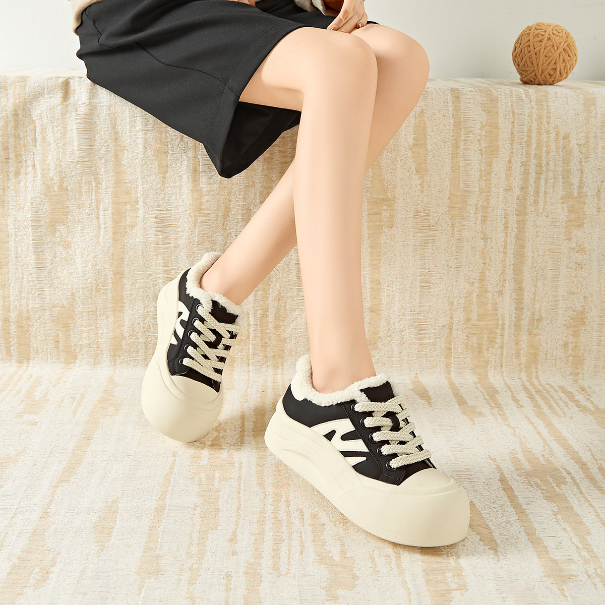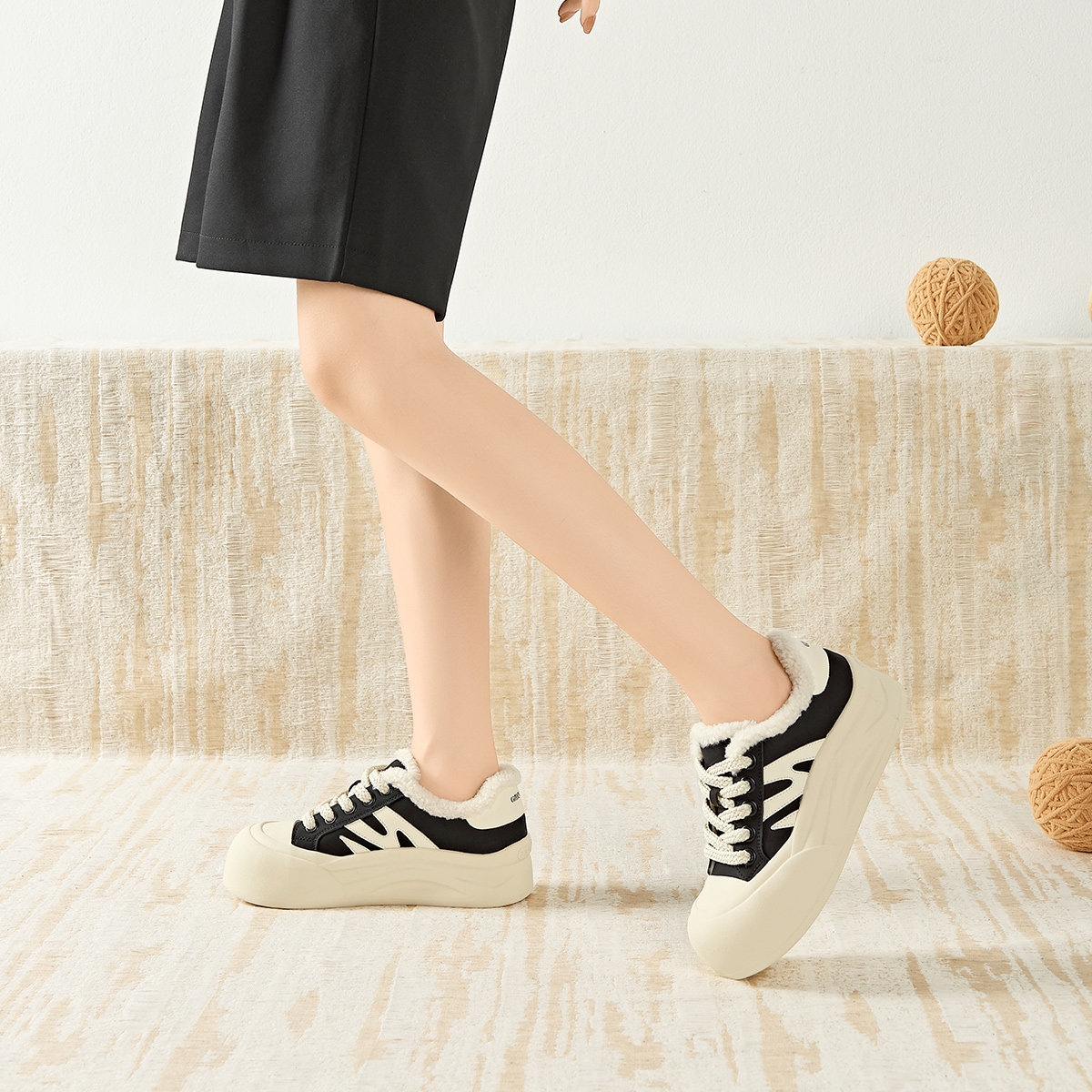 Semir女鞋德训鞋2025秋冬新款阿甘鞋子加绒小白鞋运动平底板鞋女