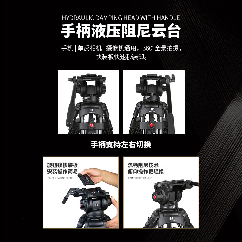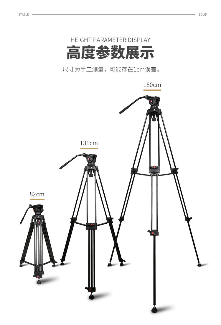 沣标摄像机三脚架单反相机专业配件拍摄视频液压云台支撑支架直播会议VLOG录像DV摄影三角架1.8米广播级通用