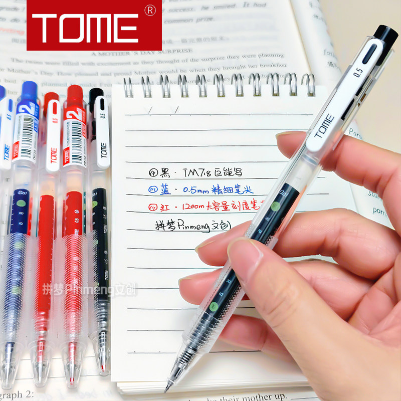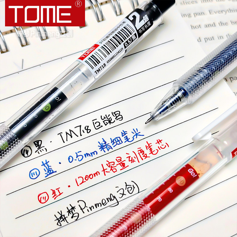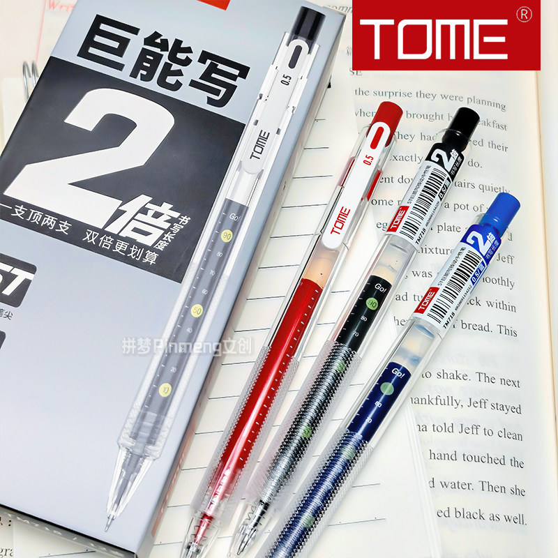 图米TOME巨能写按动中性笔ST笔头替芯黑色红笔学生用大容量刷题笔
