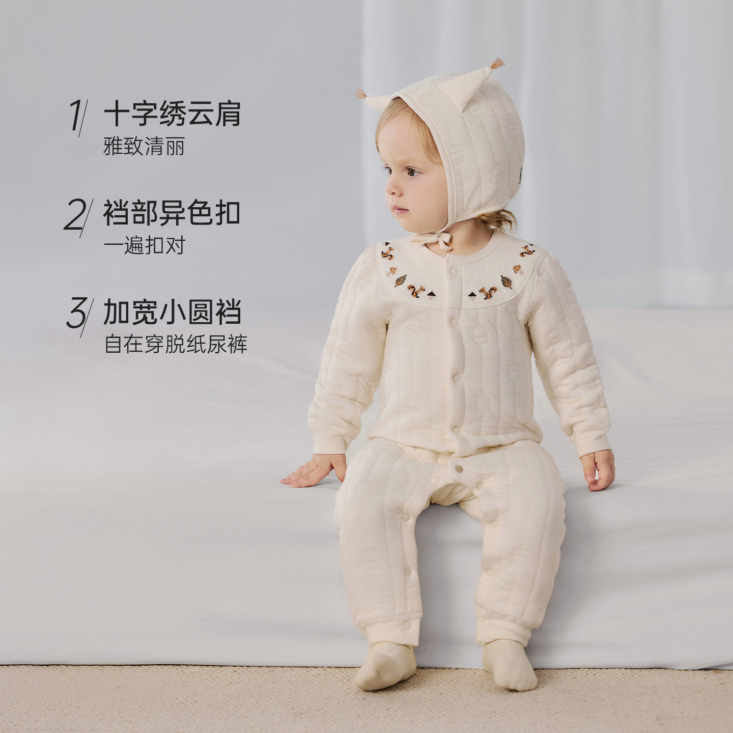 babycare冬季保暖山茶花连体衣宝宝包屁衣新生儿爬服外出婴儿衣服