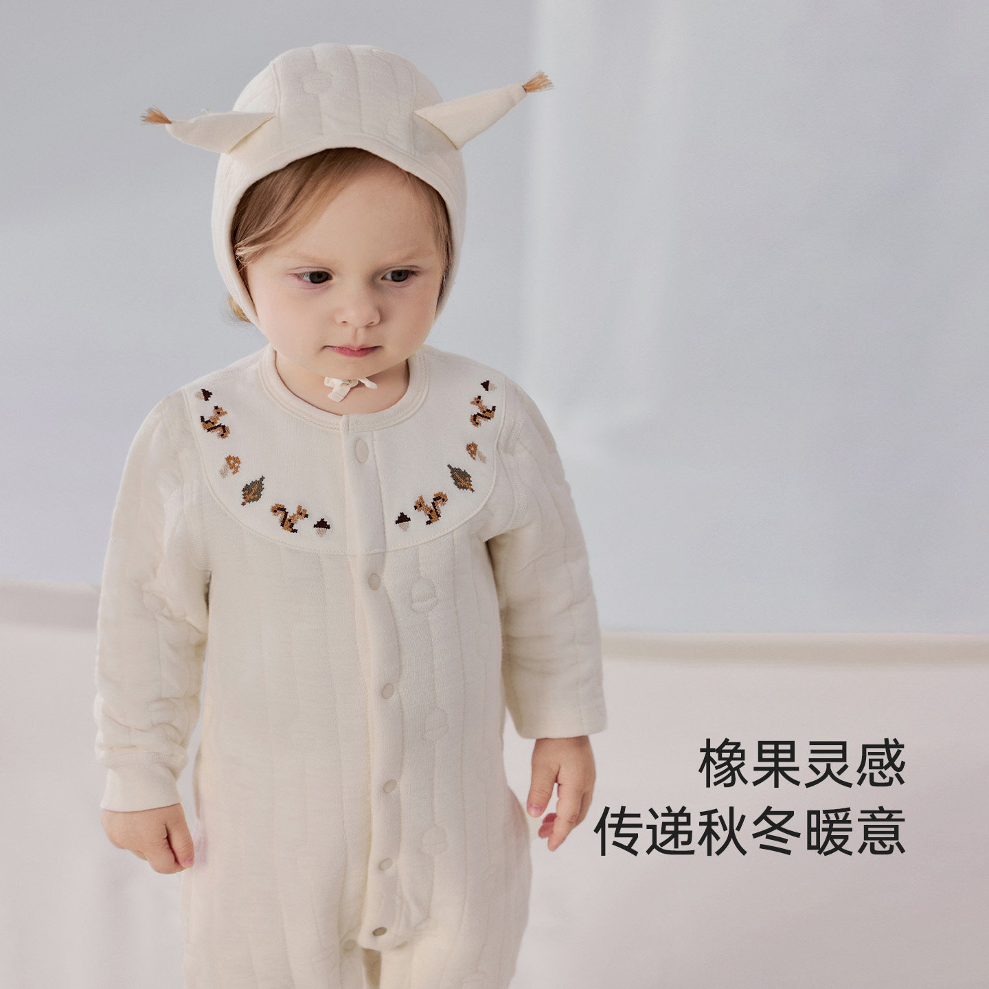 [夹棉加厚]英氏婴儿连体衣秋冬保暖新生儿冬季宝宝衣服冬新款哈衣