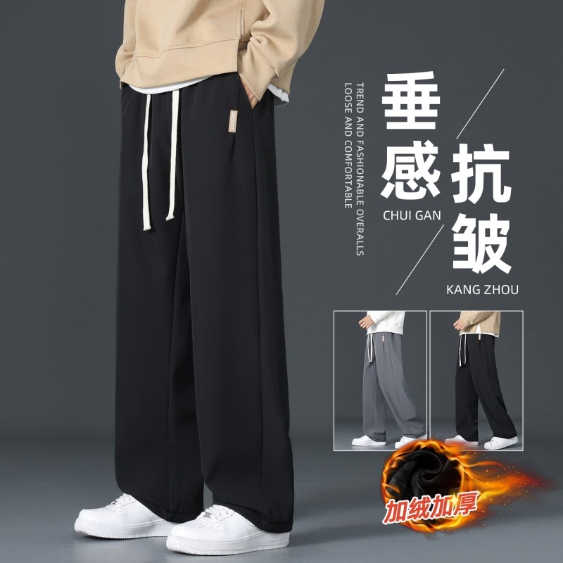 加绒加厚裤子男士秋冬季保暖棉裤直筒阔腿卫裤青少年运动休闲长裤