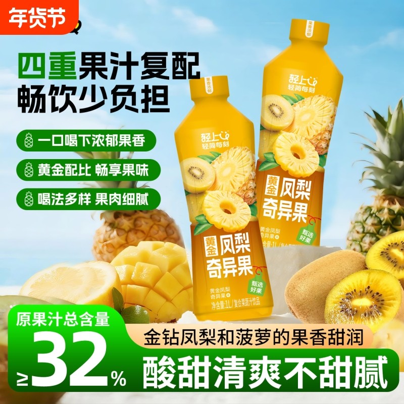 轻上黄金凤梨奇异果汁饮料家庭聚餐果汁饮品1L发整箱大瓶原浆冷冻
