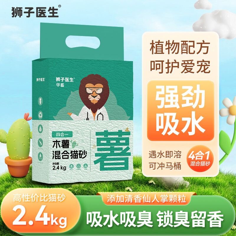 木薯猫砂除臭不粘底近无粉尘幼猫专用沙2.5kg包邮狮子豆腐混合