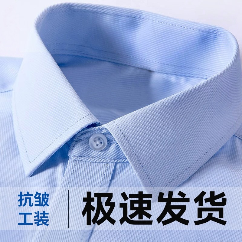 白衬衫男长袖商务职业装上班工装结婚衬衣抗皱42棉工作服银行行政