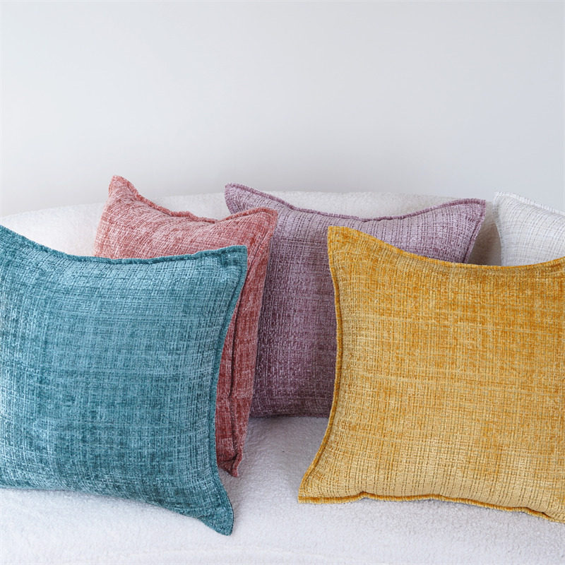 纯色雪尼尔抱枕套客厅枕头正方形咖棕大靠垫靠枕腰靠沙发靠背定制