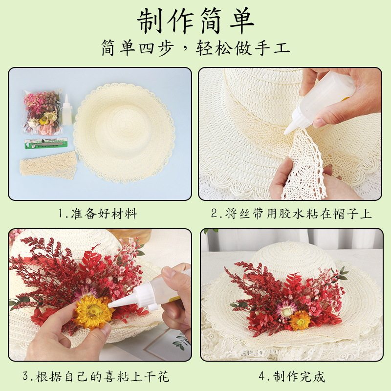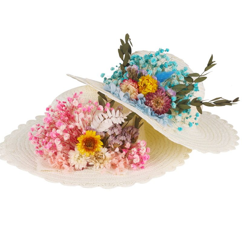 新年干花diy材料包草帽儿童手工制作亲子活动帽子暖场活动