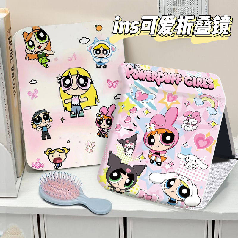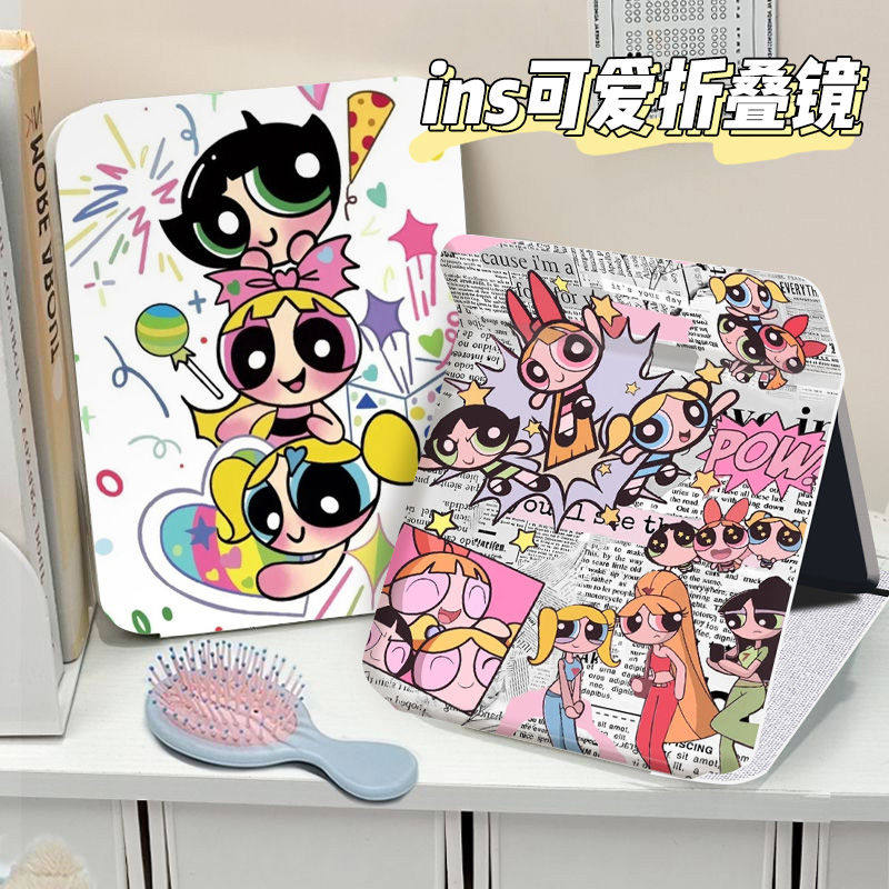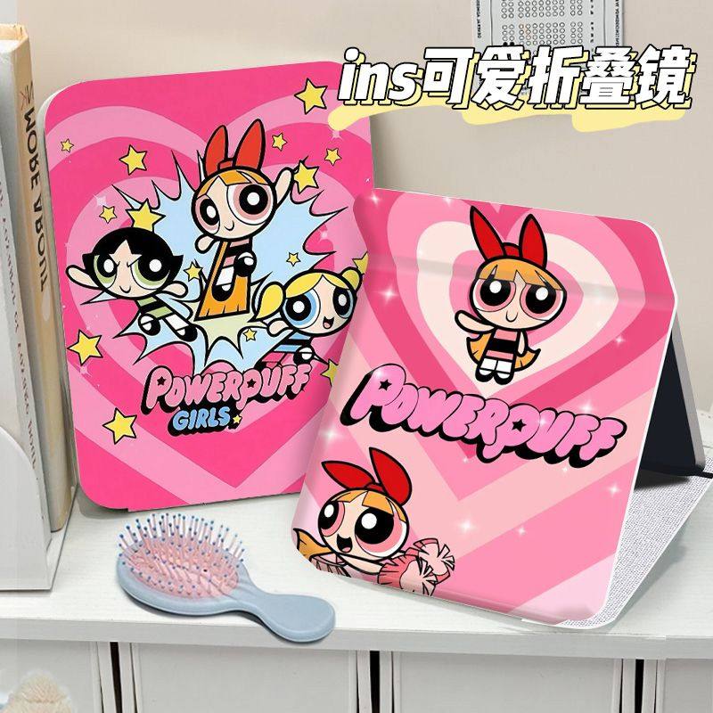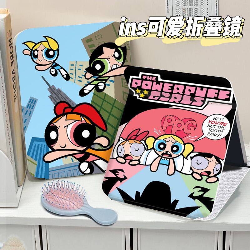飞天小女警折叠化妆镜子收纳学生便携式宿舍桌面用台式随身梳妆镜