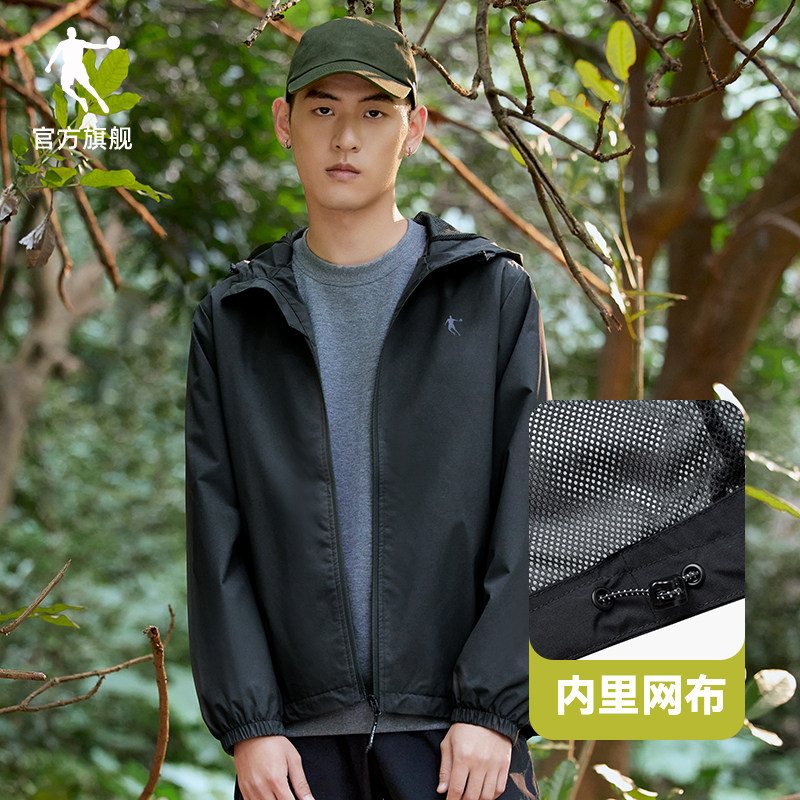 乔丹男装运动服梭织风衣男2025春秋季新款官方正品连帽夹克外套黑